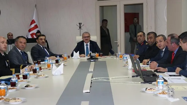 Güvenlik ve Acil Durumlar Koordinasyon Merkezi'nde (GAMER) Vali Karaloğlu başkanlığında düzenlenen toplantıya İl Emniyet Müdürü Mehmet Murat Ulucan, İl Jandarma Komutanı Tuğgeneral Tekin Aktemur ve güvenlikten sorumlu kurum temsilcileri katıldı.
