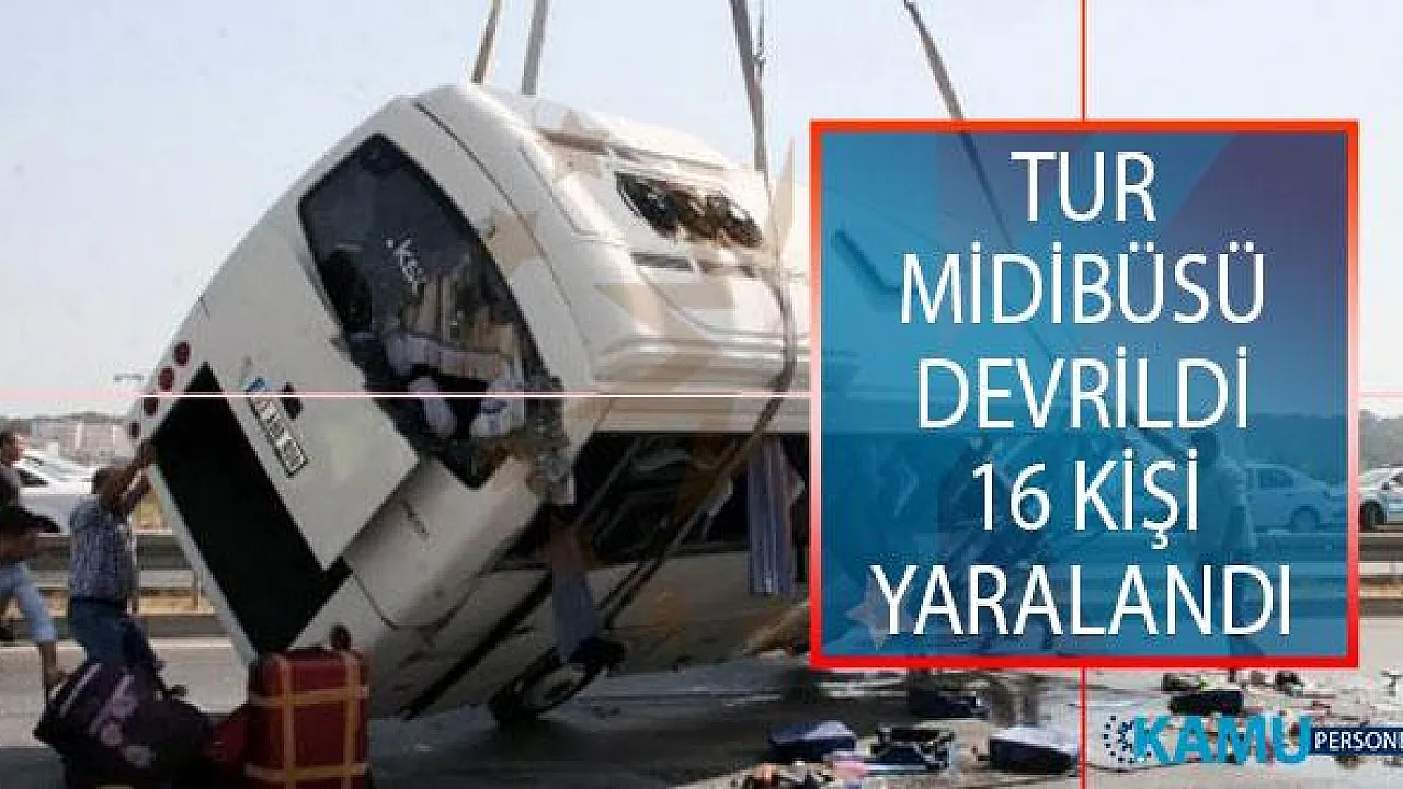 D-400 kara yolu Çevreyolu Köprüsü yakınlarında bariyerlere çarparak devrilen tur midibüsünde bulunan 16 turist hastanelere kaldırıldı.