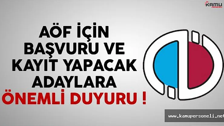Adaylar, İnternet Başvuru ve Kayıt Kılavuzu’nda açıklanan kayıt belgelerini hazırlayarak illerdeki AÖF bürolarına bizzat başvurarak kayıt yaptırabilirler.