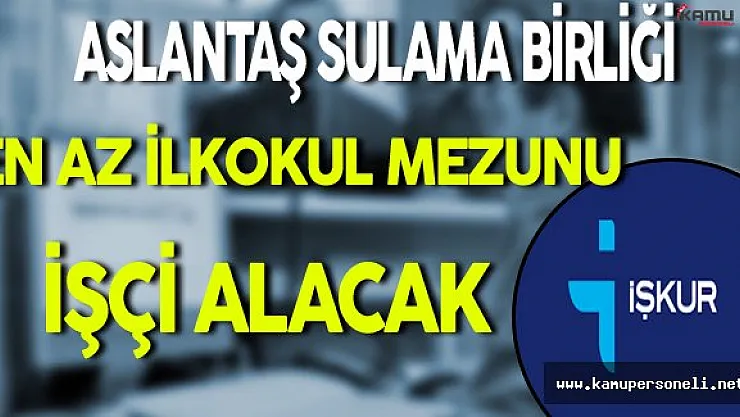 - Aslantaş Sulama Birliği En Az İlkokul Mezunu İşçi Alacak