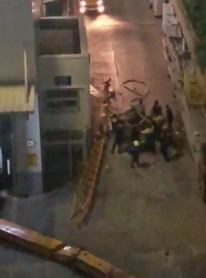 Alışveriş merkezi yıl başı hazırlıklarını sürdürdüğü esnada dış cephesinde yürütülen yılbaşı süslemesi çalışmasında kullanılan vinç, yaklaşık 35 metrelik yüksekten boşluğa düştü.