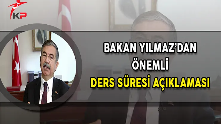 Milli Eğitim Bakanı İsmet Yılmaz ders süreleri hakkında açıklamalarda bulundu.Baka Yılmaz açıklamalarında ders sürelerinin 40 dakikanın altına düşmesi gerektiğini ifade etti.