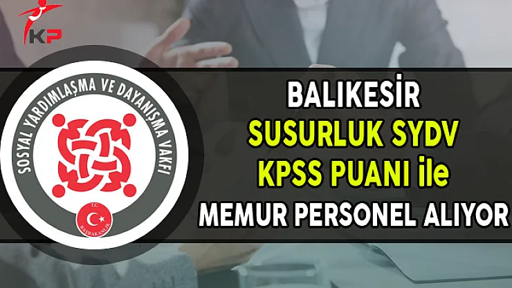 Balıkesir Susurluk SYDV KPSS Puanı ile Memur Personel Alımı Yapıyor