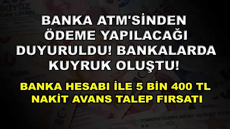 - Banka ATM'sinden ödeme yapılacağı duyuruldu! Bankalarda kuyruk oluştu! Banka hesabı ile 5 bin 400 TL nakit avans talep fırsatı