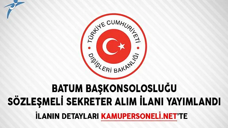 Batum Başkonsolosluğunda görevlendirmek üzere sözleşmeli sekreter alımı yapılacağı ifade edildi.Dışişleri Bakanlığı tarafından yayımlanan ilana başvuru yapacak adayların başvuru şartlarına haiz olması gerektiği ifade edilirken başvuru şartlarına haiz olma