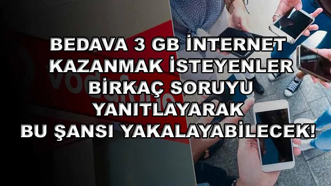 - Bedava 3 GB internet kazanmak isteyenler birkaç soruyu yanıtlayarak bu şansı yakalayabilecek!