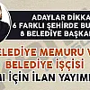 - Belediye Memuru ve Belediye İşçisi Alımı İçin Yeni İlanlar Yayımlandı (Başvurular Başlıyor)