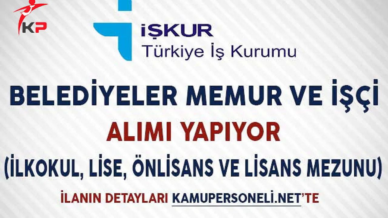 - Belediyeler Memur ve İşçi Alımı Yapıyor (İlkokul, Lise, Önlisans ve Lisans Mezunu)