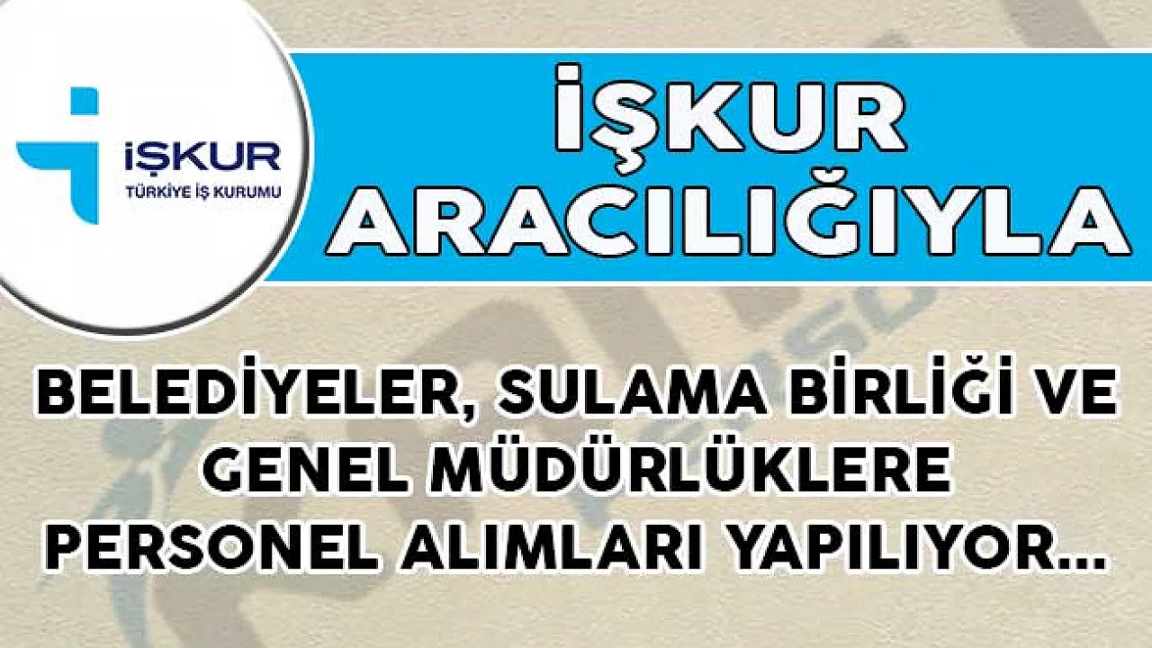 - Belediyeler, Sulama Birliği ve Genel Müdürlüklere İŞKUR Aracılığıyla Personel Alımları Yapılıyor