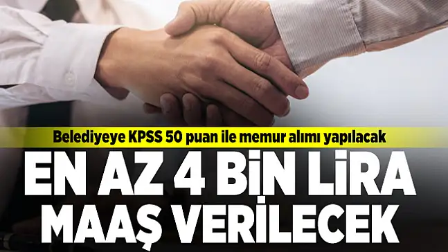 - Belediyeye KPSS 50 puan ile erkek kadın en az 4 bin lira maaşla personel alınacak!