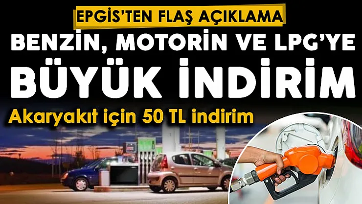 - Benzin, motorin ve LPG fiyatlarına çok büyük indirim! EPGİS'ten açıklama geldi! Akaryakıt alımında 50 TL indirim paylaşıldı