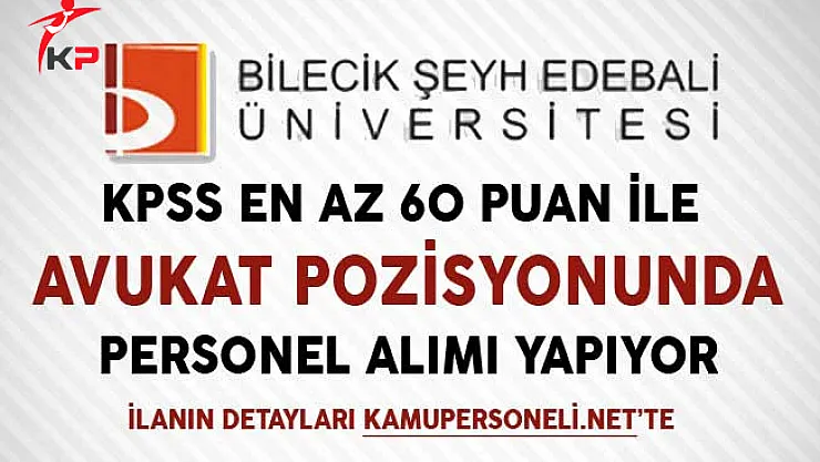 Bilecik Şeyh Edebali Üniversitesi Rektörlüğü, Devlet Personel Başkanlığı aracılığıyla yayımladığı ilan ile Avukat kadrosuna sınav ile atama yapılacağını duyurdu.