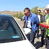 BİLECİK Valisi Tahir Büyükakın, karayolunda seyreden araç sürücülerine trafik kuralarıyla ilgili uyarıcı bilgilerin yer aldığı broşürler dağıttı.