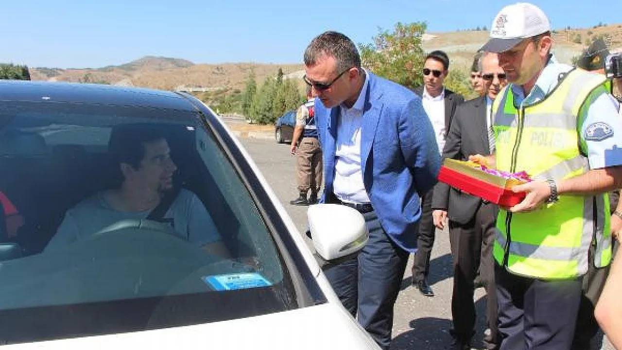 Denetimlerde jandarma ve polis ekipleri sürücüler ile araçlarda bulunanlara çikolata ikramında bulundu.