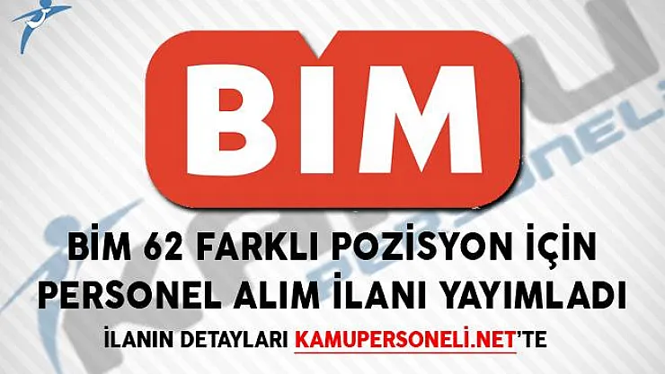 BİM tarafından yayımlanan ilanlara göre 62 farklı pozisyonda personel alımı yapılacağına yer verildi.Adayların başvuru şartlarına haiz olmaları gerektiği ifade edilirken başvuru şartlarına uygun olmayanların başvurularının geçersiz sayılacağı belirtildi.