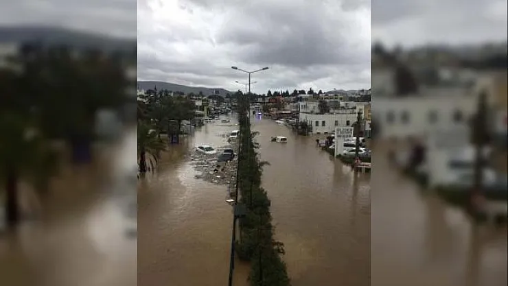 Ardından gök gürültülü yağmur başladı. Yağmur, zaman zaman yerini doluya bıraktı. Yağış nedeniyle, ilçe merkezindeki Dere Sokak, Gümbet Kavşağı, Bodrum Çevreyolu, Bitez, Ortakent ve Konacık Mahallesi’ndeki dere yatağına yakın kesimlerde su baskınları yaşandı. Bodrum katlardaki bazı ev ve iş yerlerini su bastı. Cadde ve sokaklar göle dönerken, araç sürücüleri yollarda ilerlemekte güçlük çekti.