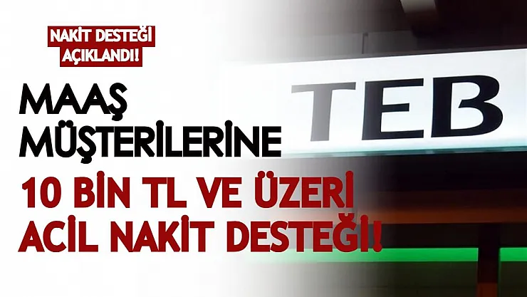 Türkiye'nin en köklü bankalarından biri olan Türk Ekonomi Bankası'nın (TEB), maaş müşterilerine özel acil nakit kampanyası duyuruldu! Kampanya kapsamında maaşını TEB'den alan müşterilere uygun faiz oranı ile 36 ay vadeye kadar ihtiyaç kredisi sağlanacak.İ