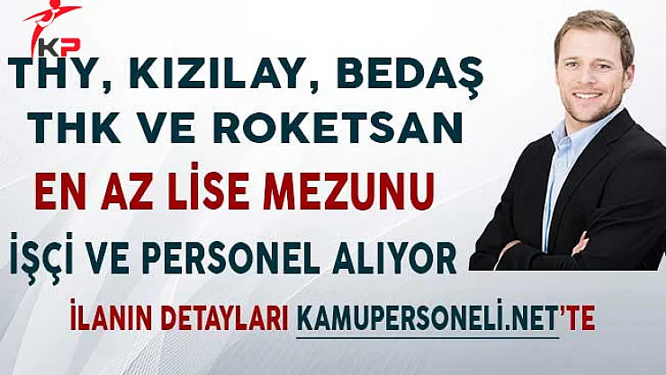 İşçi ve personel alım ilanı yayımlayan özel sektör firmaları arasında, Türk Hava Yolları, Türk Hava Kurumu, BEDAŞ, Roketsan ve Türk Kızılayı yer alıyor. Söz konusu kurumlara ait ilanlara başvuru yapacak adaylarda olması istenen genel şartları aşağıda aktarıyoruz.