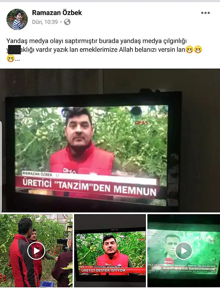 Haberde sözlerinin tamamı aktarılmayan üretici Ramazan Özbek ise sosyal medya hesabından isyan etti.