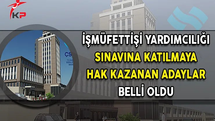 Çalışma ve Sosyal Güvenlik Bakanlığının resmi web adresi üzerinden bir duyuru yayımlandı.Yayımlanan duyuruda 2 Aralık 2017 tarihinde yazılı kısmı gerçekleştirilecek olan İşmüfettişi Yardımcılığı sınavına katılmaya hak kazananların belli olduğu ifade edild