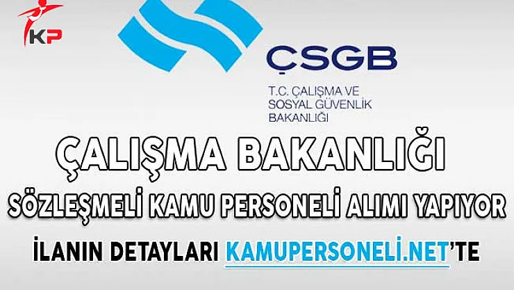 Çalışma Bakanlığı kendi bünyesinde görevlendirmek üzere sözleşmeli kamu personeli alımı yapıyor.Geçtiğimiz günlerde Devlet Personel Başkanlığı resmi internet sitesi üzerinden yayımlanan ilan bugün Çalışma ve Sosyal Güvenlik Bakanlığı'nın resmi web adresin