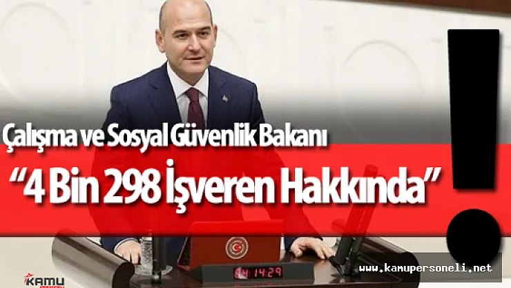 Cumhuriyet Halk Partisi Milletvekili Sezgin Tanrıkulu tarafından yazılı olarak verilen soru önergesine Çalışma ve Sosyal Güvenlik Bakanı Süleyman Soylu'dan cevap geldi.Bakan Soylu 2015 senesinde iş sağlığı ve güvenliği teftişleri sonucunda 4298 işveren ha