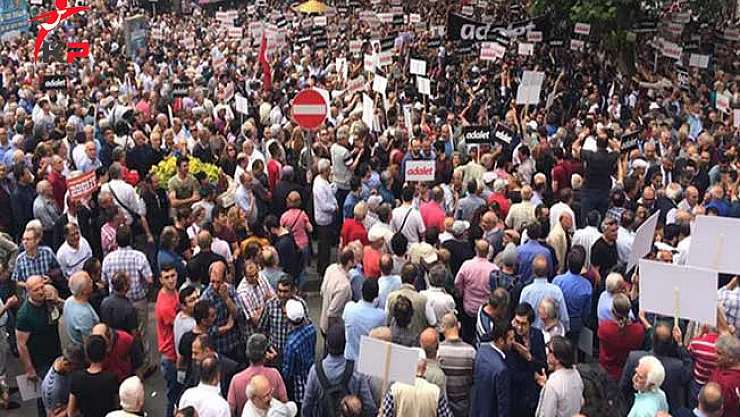 CHP'nin Güvenpark'tan başlattığı yürüyüşe ilişkin olarak CHP Genel Başkanı Kemal Kılıçdaroğlu saat 11.15'te alana geldi ve bir konuşma yaptı. Elinde adalet pankartı tutan CHP Genel Başkanı Kılıçdaroğlu konuşmasında adaletin gereğini yapıyoruz dedi. Bütün dünya duysun diyen Kılıçdaroğlu "Türkiye'de bir dikta yönetimi var" dedi.
