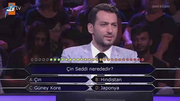 Seyirci joker hakkını kullanan yarışmacı istediği cevabı alamadı. Seyircinin sadece yüzde 51'i Çin cevabını verdi fakat yarışmacı telefon joker hakkını da kullandı. Jokerleri sayesinde doğru cevap olan Çin şıkkını işaretleyen yarışmacı daha sonraki soruları da gördü.