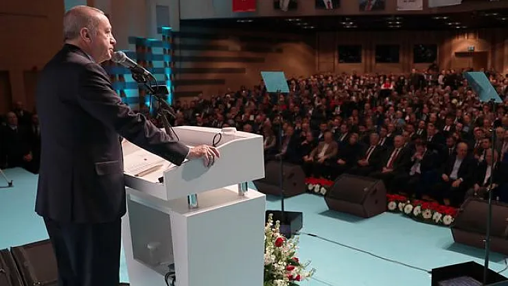 Erdoğan, AK Parti'nin kurulduğu günden bu güne kadar görev alanların birçoğuyla 1994'ten beri beraber olduklarını anımsatarak, "Bu süre içinde her kademede çeşitli dönemlerde bayrak değişimleri yaşandı. Kimi görev değişikliği, kimi emeklilik kimi vefat kimi yol ayrımı sebebiyle vedalaştığımız yol arkadaşlarımız oldu. Öncelikle ebediyete irtihal eden tüm arkadaşlarımıza Allah'tan rahmet diliyorum. AK Parti'yi AK Parti yapan değerlerimiz, inancımız, azmimiz, heyecanımız, fedakarlığımız, hizmetlerimiz hep dimdik ayakta kaldı. Türkiye'nin belediyelerde bakacak olursak neredeyse son çeyrek asırlık merkezi hükümette son 16 yıllık dönemine günahıyla sevabıyla hep birlikte imza attık." ifadelerini kullandı.