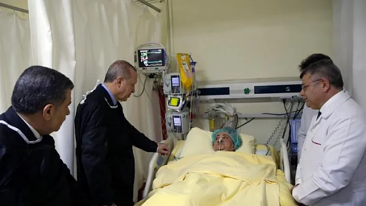 Yaralıları ziyaret eden ve sağlık durumları hakkında hastane başhekimi Prof. Dr. Recep Demirhan ve doktorlardan bilgi alan Cumhurbaşkanı Erdoğan, yaralılara "geçmiş olsun" dileklerini iletti.