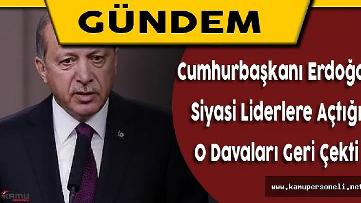 Cumhurbaşkanı Recep Tayyip Erdoğan, CHP Genel Başkanı Kemal Kılıçdaroğlu ile MHP Genel Başkanı Devlet Bahçeli'ye karşı açtığı tazminat davalarını geri çekti.