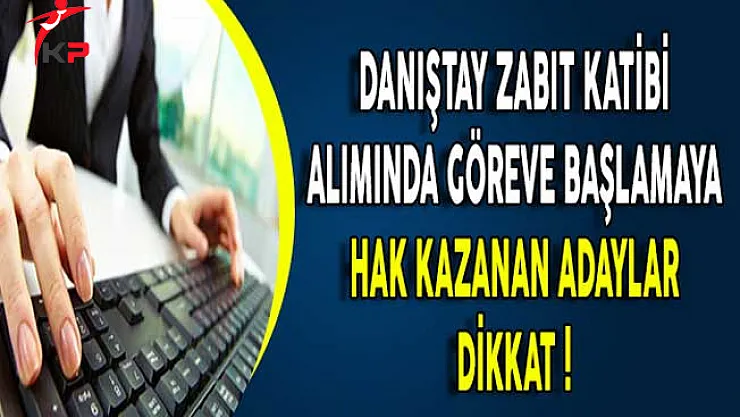 Bu konu hakkında Danıştay Başkanlığı tarafından yayımlanan duyuruda "Başkanlığımızda 657 sayılı Devlet Memurları Kanunu’nun 4/B maddesi, 2575 sayılı Danıştay Kanunu’nun 12’nci maddesi, 06/06/1978 tarihli ve 7/15754 sayılı Bakanlar Kurulu Kararı ile yürürlüğe konulan Sözleşmeli Personel Çalıştırılmasına İlişkin Esaslar ve Danıştay Personeli Atama ve Nakil Yönetmeliği hükümleri uyarınca, sözleşmeli personel pozisyonunda Zabıt Kâtibi olarak çalışmak üzere şahsen başvuru yapan adaylar için yapılan uygulama sınavında başarılı olan adaylara yönelik olarak 13-16-17/10/2017 tarihlerinde yapılan sözlü sınavı sonucunda; Danıştay Personeli Atama ve Nakil Yönetmeliği’nin "Değerlendirme" başlıklı 13 üncü maddesi uyarınca merkezi sınav puanının %40’ı, uygulama sınav puanının %40’ı ve sözlü sınav puanının %20’si alınmak suretiyle oluşturulan Nihai Başarı Listesine göre göreve başlatılmaya hak kazanan adayların, 20/02/2018 Salı gününe kadar Danıştay Başkanlığı Personel ve Eğitim Müdürlüğüne şahsen ve aşağıda istenilen belgelerle birlikte başvurmaları gerekmektedir.