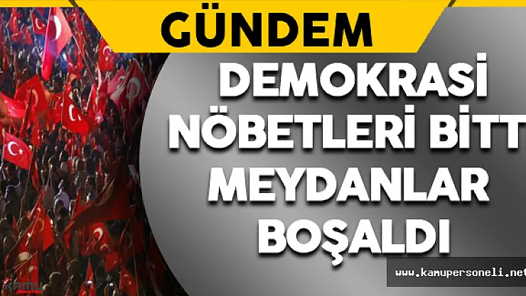 15 Temmuz darbe girişiminin ardından halkın sokaklara çıkarak başlattığı 'Demokrasi Nöbetleri' bitti, meydanlarda pankartlar ve bayraklar kaldı.Halk, 10 Ağustos'ta son kez meydanlara çıkarak, demokrasi nöbetlerine noktayı koydu.