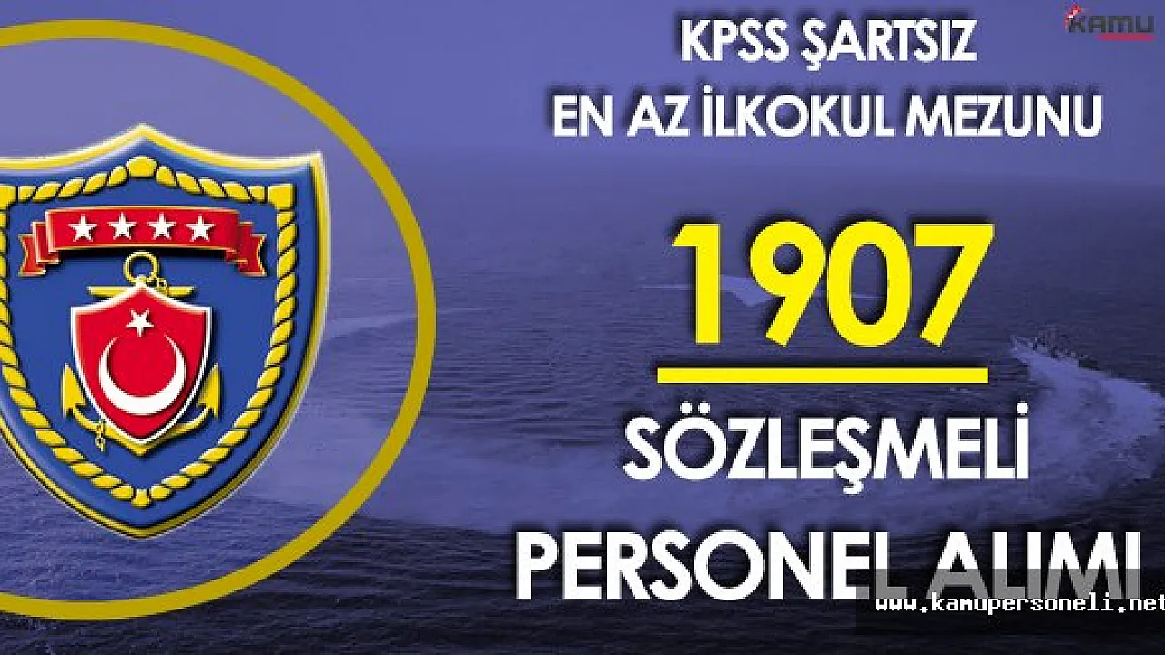 Deniz Kuvvetleri Komutanlığı En Az İlkokul Mezunu Sözleşmeli Personel Alımı Başvurular Devam Ediyor Deniz Kuvvetleri Komutanlığı'nın KPSS Şartsız en az ilkokul mezunu 1907 sözleşmeli personel alımı için başvuru süreci devam ediyor.Deniz Kuvvetleri Komutan