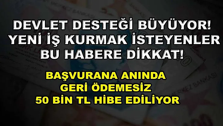 - Devlet desteği büyüyor! Yeni iş kurmak isteyenler bu habere dikkat! Başvurana anında geri ödemesiz 50 bin TL hibe ediliyor