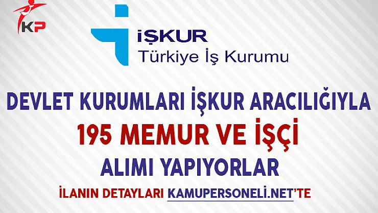 - Devlet Kurumları İşkur Aracılığıyla 195 Memur ve İşçi Alımı Yapıyor