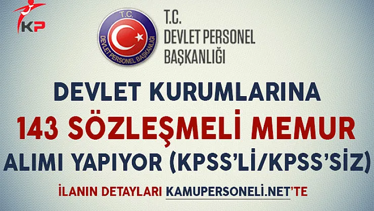 - Devlet Kurumlarına 143 Sözleşmeli Memur Alınıyor (KPSS'li/KPSS'siz)