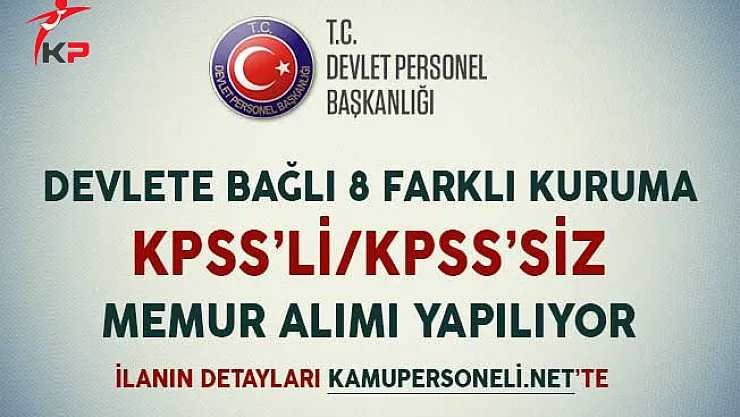 - Devlete Bağlı 8 Farklı Kuruma KPSS'li KPSS'siz Memur Alımı Yapılıyor