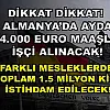 - Dikkat Dikkat! Almanya'da Ayda 4.000 Euro Maaşla İşçi Alınacak! Farklı Mesleklerde Toplam 1.5 Milyon Kişi İstihdam Edilecek!