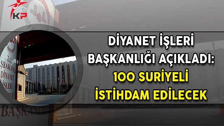 Geçici Korunanların Çalışma İzinlerine Dair Yönetmelik kapsamında Suriyeli 100 kişi istihdam edilecek. Alınacak kişiler sığınmacılara din hizmeti sunacak.