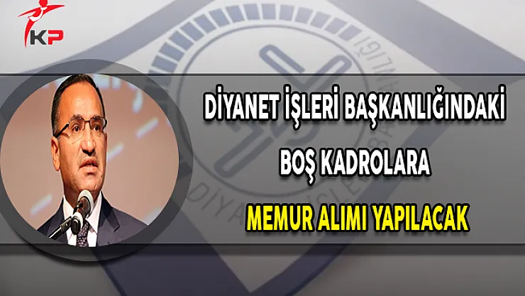 Başbakan Yardımcısı ve Hükümet Sözcüsü Bozdağ, Diyanet İşleri Başkanlığındaki boş kadrolara memur alımı yapılacağına ilişkin açıklamada bulundu.Alım Sınavı İlanı Yayımlanacak Bozdağ, önümüzdeki günlerde imam hatip, Kur'an kursu öğreticisi ve müezzin-kayyı