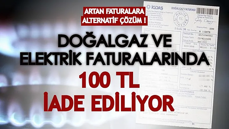 - Doğalgaz ve elektrik faturalarına 'alternatif' çözüm! Fatura tutarlarının 100 TL'si iade ediliyor