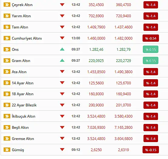 ALTIN FİYATLARINDA SON DURUM