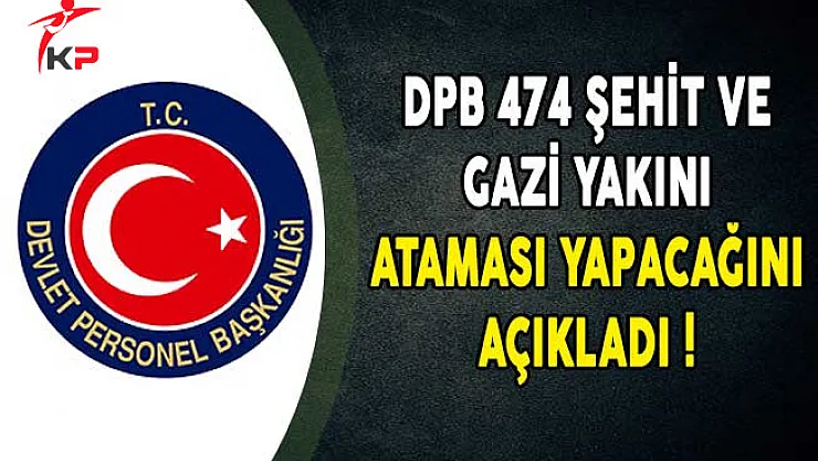 - DPB 474 Şehit ve Gazi Yakını Ataması Yapacağını Açıkladı