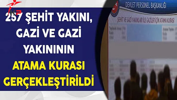 Devlet Personel Başkanlığının resmi web adresi üzerinden bir duyuru yayımlandı. Yayımlanan duyuruda 3713 sayılı Kanunun ek 1 inci maddesine göre Aile ve Sosyal Politikalar Bakanlığı tarafından hak sahibi olduğu tespit edilen 257 şehit yakını, gazi ve gazi yakını atama kurasının yapıldığı ifade edildi