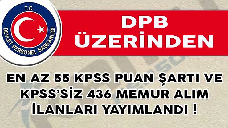 - DPB Üzerinden En Az 55 KPSS Puan Şartı ve KPSS'siz 436 Memur Alım İlanları Yayımlandı!