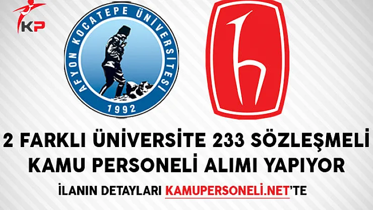 DPB'de ilan yayımlayarak sözleşmeli kamu personeli alımı yapacağını duyuran Hacettepe Üniversitesi ve Afyon Kocatepe Üniversitesi 233 personel alımı yapacak.Bununla beraber ilanın merak edilen detaylarını ve başvuru şartlarını ziyaretçilerimizle paylaşıy