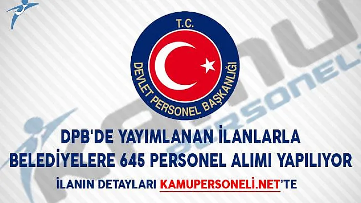 - DPB'de Yayımlanan İlanlarla Belediyelere 645 Personel Alımı Yapılıyor!