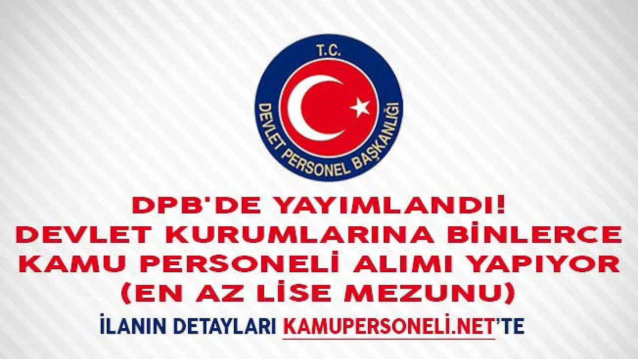 - DPB'de Yayımlandı! Devlet Kurumlarına Binlerce Kamu Personeli Alımı Yapıyor (En Az Lise Mezunu)