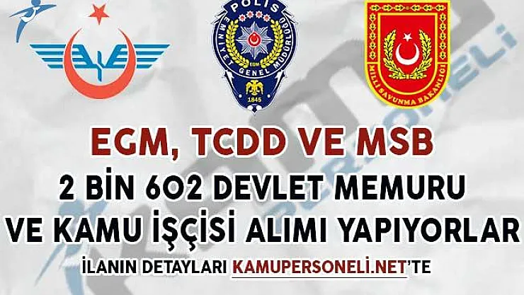 - EGM, MSB ve TCDD 2 Bin 602 Devlet Memuru ve Kamu İşçisi Alıyorlar